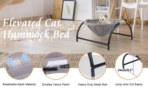- Our cat hammock is supported by four strong and durable iron frames, while adding four silicone anti-scratch feet at the bottom.