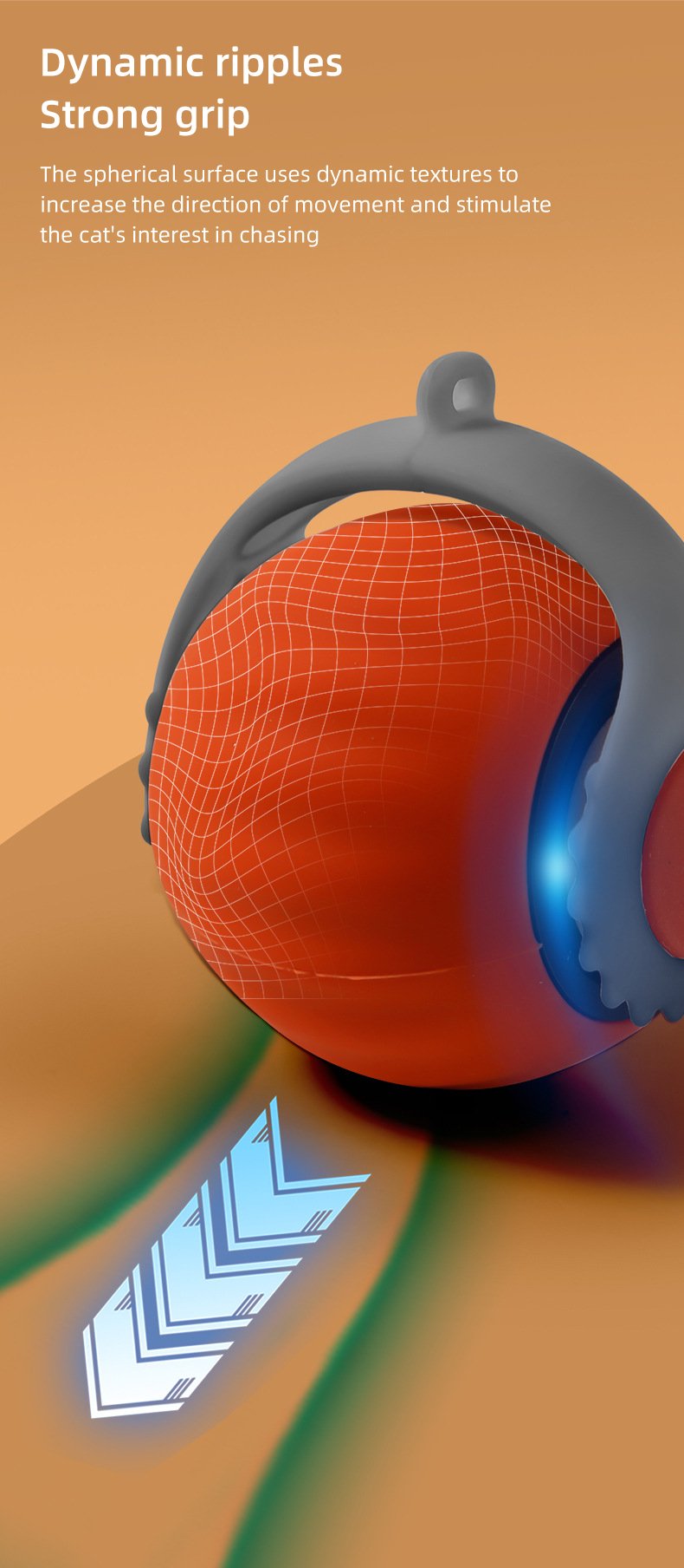 Keeps your cat entertained with unpredictable movement and two adjustable speed modes.Its unique wave texture adds excitement,while the rechargeable battery ensures hours of fun indoors and outdoors.Perfect for active play and engaging your cat in endless chasing!