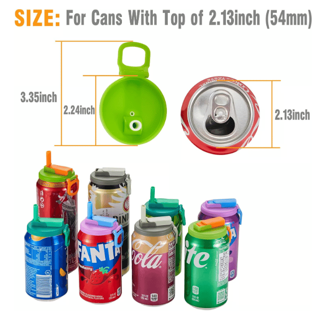 This set contains 1 soda can lids in a random colors meet your different needs. Each soda can lid with standard top size 2.13 inch perfectly that fits most beverage cans in the market. not fit Slim Cans, Silos/Tall Boys, or Ribbed Top/Antiquated Cans